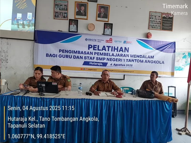 POSKOTASUMATERA.COM – TAPANULI SELATAN – Menyongsong tantangan Revolusi Industri 4.0 dan pendidikan abad ke-21, SMPN 1 Tano Tombangan Angkola melaksanakan pelatihan pembelajaran mendalam (deep learning) dan kecerdasan buatan (AI) selama dua hari, mulai Senin hingga Selasa, 4–5 Agustus 2025. Bertempat di aula sekolah, kegiatan ini menghadirkan pemateri dari kalangan praktisi pendidikan dan teknologi yang kompeten, yaitu Padang Togatorop, S.Pd., MM, Sihar Simamora, S.Pd., Tubar Nadeak, S.Pd., serta Eunike Simanjuntak, S.Pd.